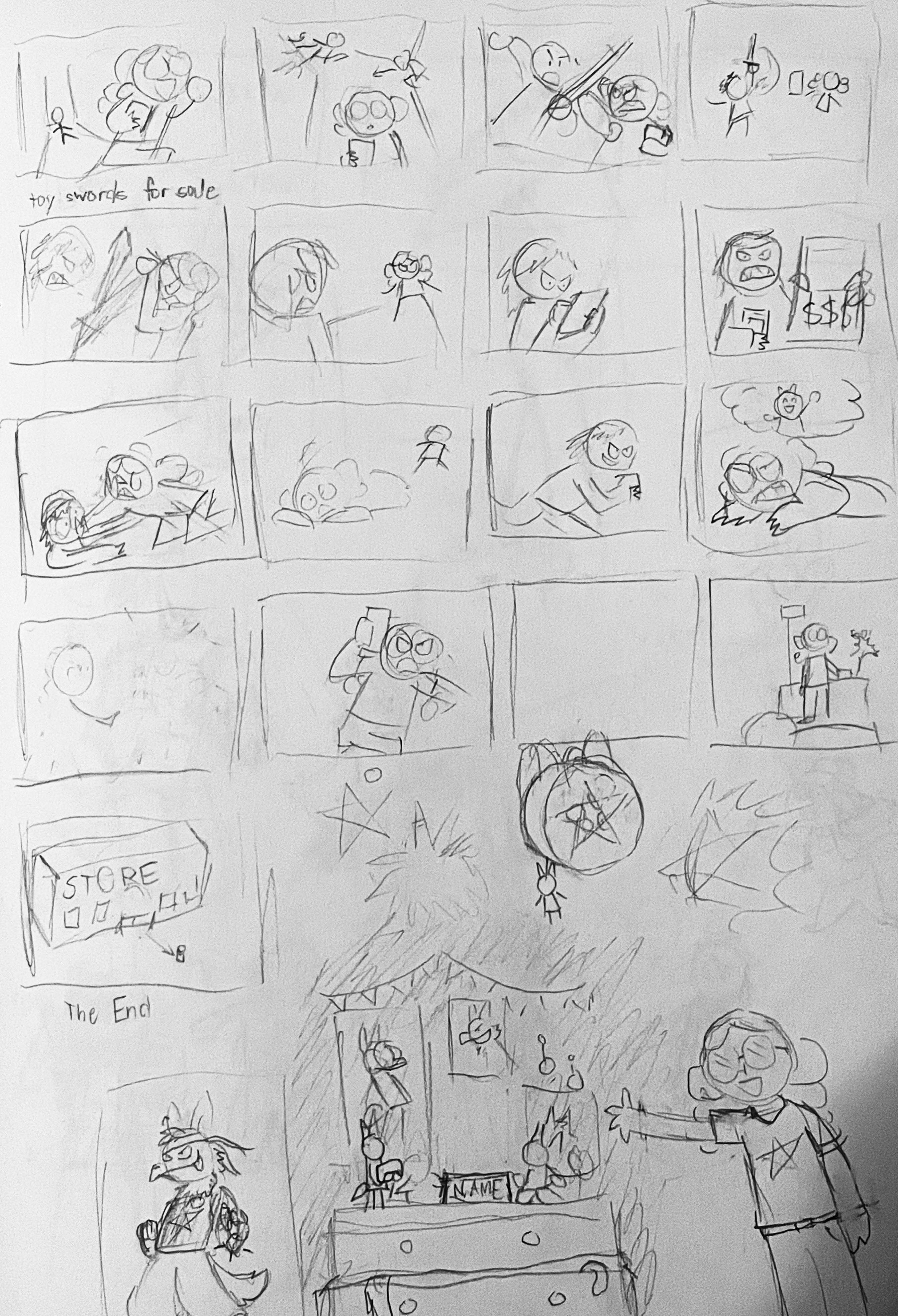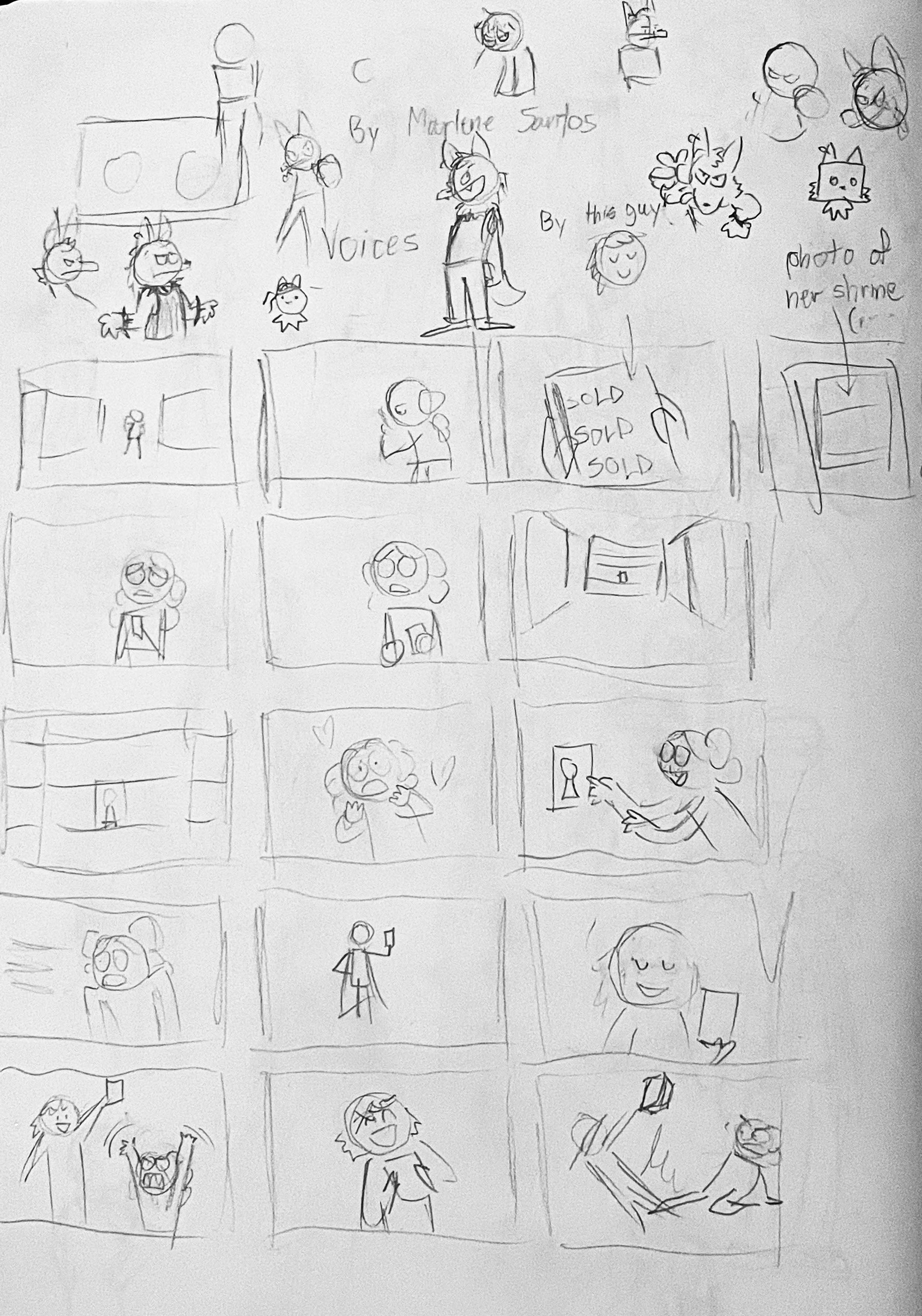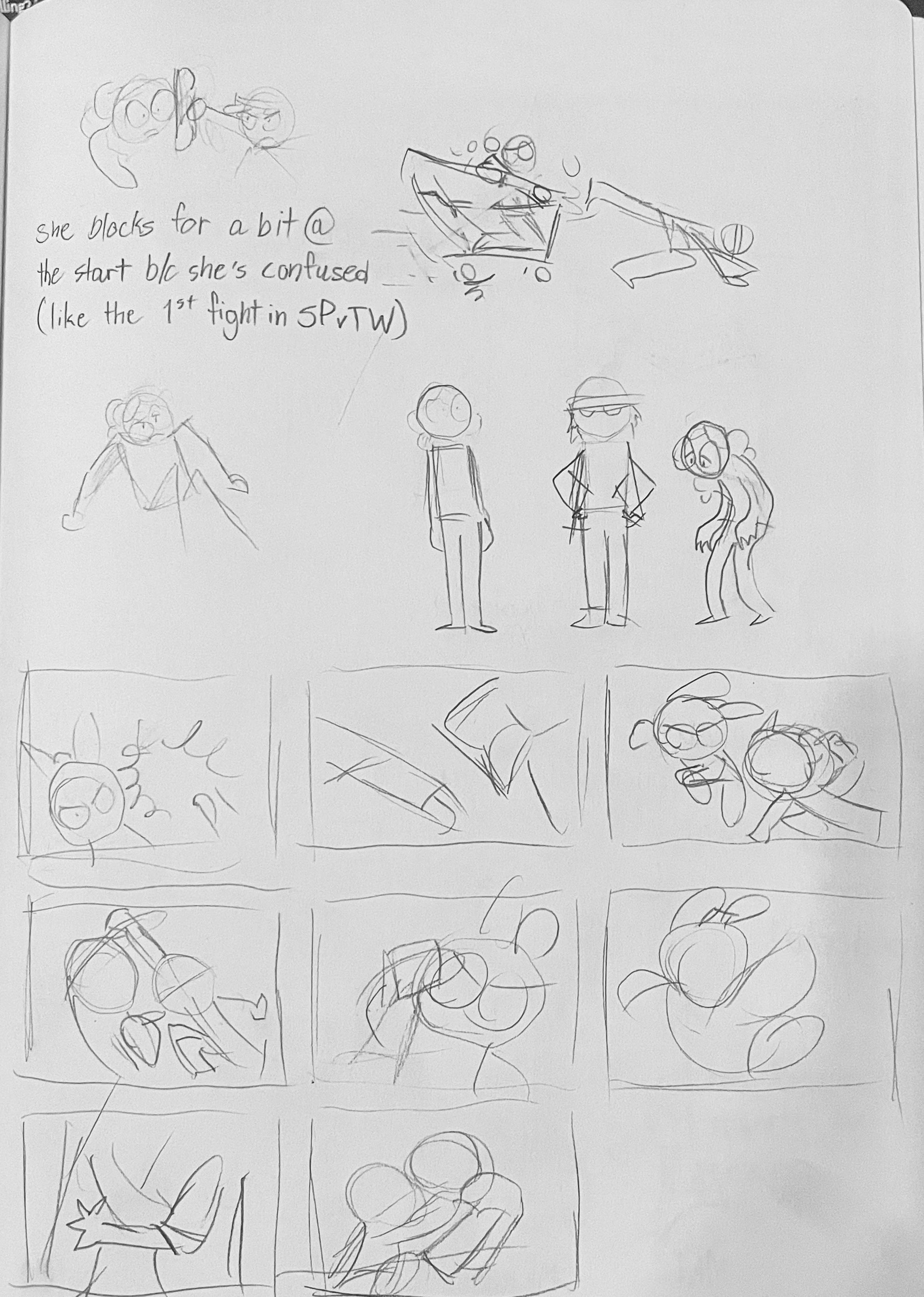 Thumbnails and other sketches for this sequence